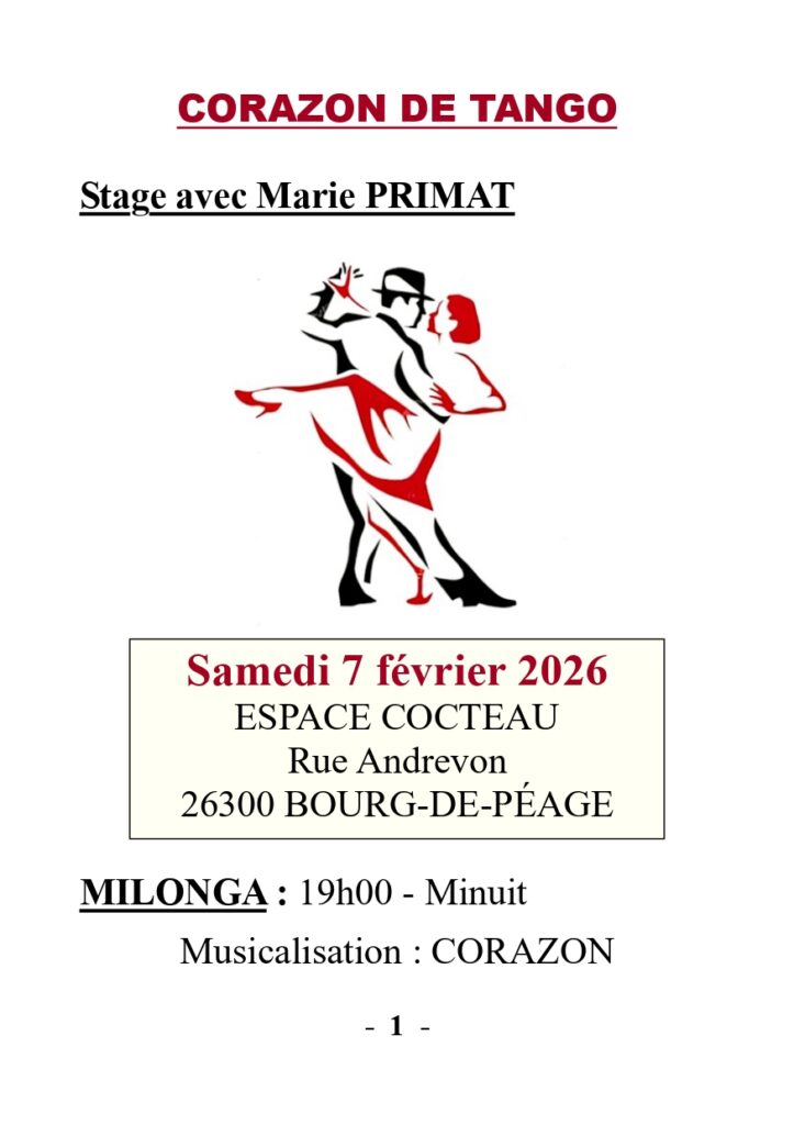 Stage Tango Argentin samedi 7 février 2026