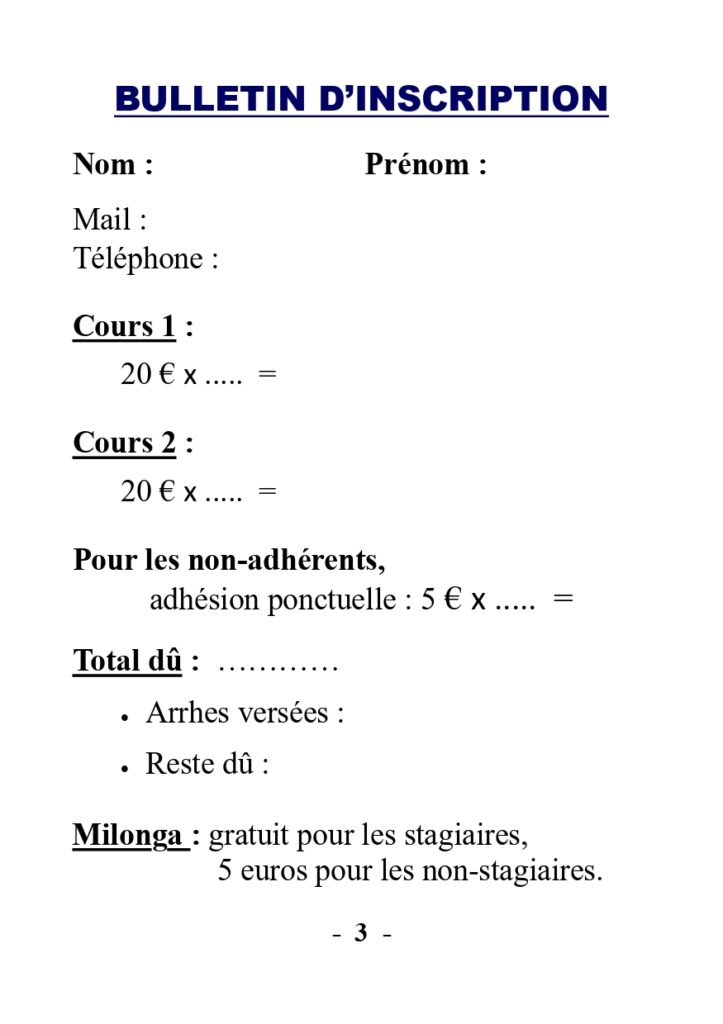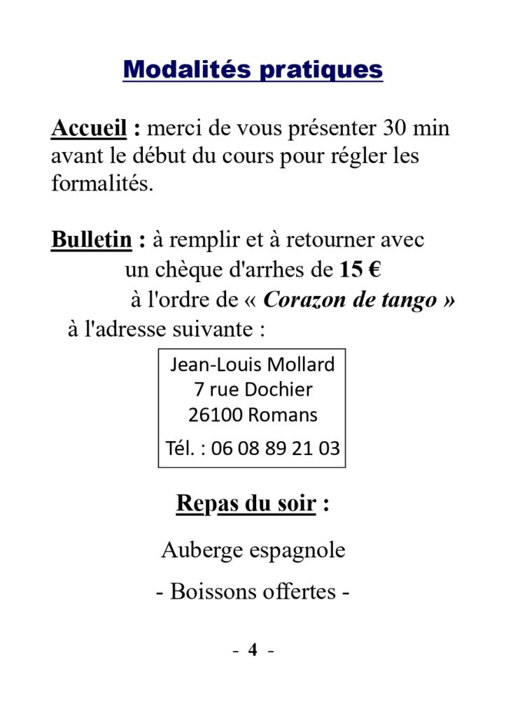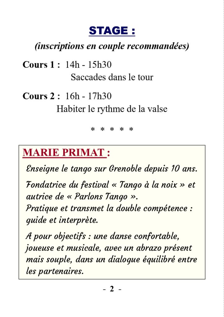 STAGE et MILONGA