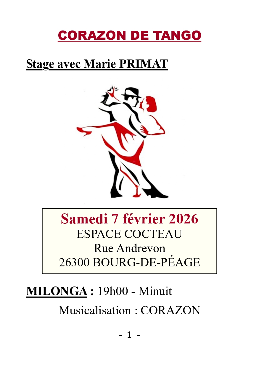 Stage Tango Argentin samedi 7 février 2026
